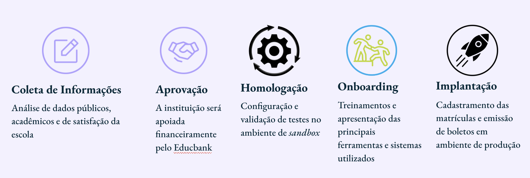 O Educbank recomenda que o parceiro faça as seguintes ações dentro do ambiente de sandbox.